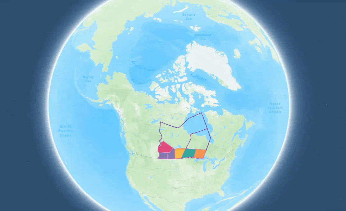 This animation shows Canada’s airspace with the Winnipeg Flight Information Region (FIR) outlined in blue. The coloured blocks represent the partitioned airspace. Based on historical traffic patterns, our Digital Twin tool recommends how to divide the airspace and the necessary staff needed throughout the day to manage demand safely and efficiently.